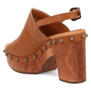 Dingo Clover Tan Leather Wooden Platform Sandals Sz 7M - Retail $283