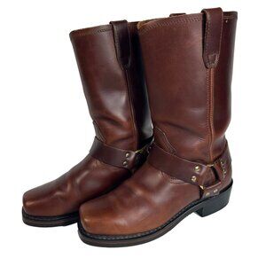 Dingo Harness Biker Boots Mens 8.5 EW Brown Leather Square Toe DI19056