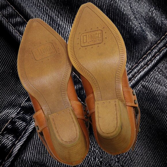 Dingo Kick Back Leather Harness Detail Cognac Ankle Bootie, Size 6.5