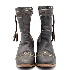 Leather Boots Studded Grey Tassel Zip Up Country Western Dingo Women's Size 10