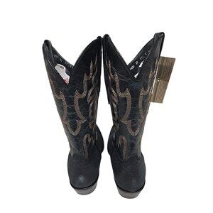 Step into style with the Dingo Men's DI 107 The Duke Snip Leather Pull On Western Boot. Crafted in a striking navy color, these boots offer both durability and flair with a comfortable fit.