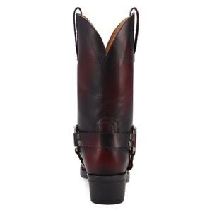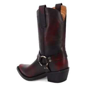 The Dingo "Ride A Way" is a women's leather Western boot in a wine red color that combines classic cowboy style with moto-inspired design. These Ride Away boots blend western style with moto fashion for a bold and timeless look
