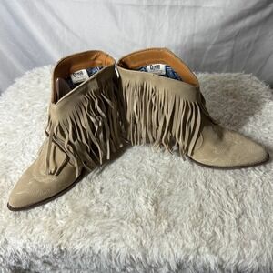 Dingo Sand Suede Fringe Western Ankle Boots Size 11M Embroidered Detail