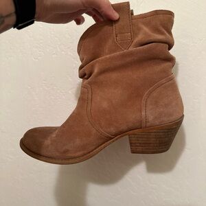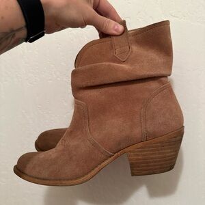 Step out in style with these chic suede ankle boots. Perfect for any occasion, these tan boots offer both comfort and elegance.