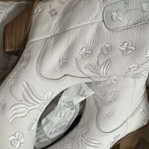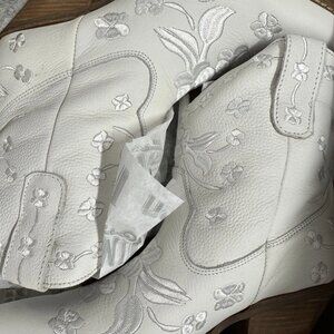 Step into classic western style with these Dingo Sweetheart white leather cowboy boots. The timeless silhouette features authentic western stitching and a stylish pointed toe. With a retail value of $230, these boots are a fantastic value.