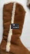 Stylish tan boots with cozy shearling trim. Perfect for warmth and style.