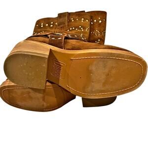 Dingo Troubadour Leather Studded Boots Pull-On Brown Size 6.5M NWOB
