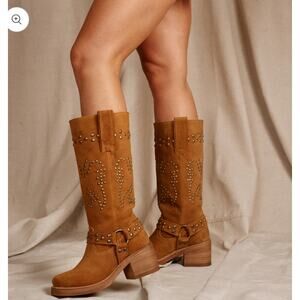 Dingo Troubadour Leather Studded Boots Pull-On Brown Size 6.5M NWOB