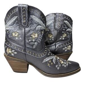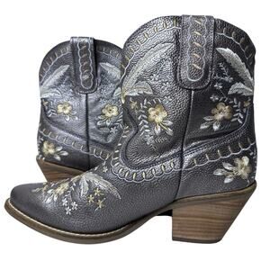 Dingo Western Ankle Boots Snip Toe Primrose Metallic Embroidered Floral Size 9M