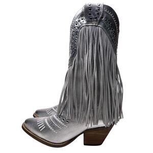 Dingo Western Cowboy Boots 1969 Gypsy Women's 9.5 Snip Toe Silver Leather Fringe