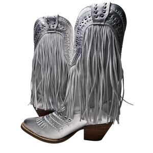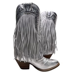 Dingo Gypsy Studded Fringe Metallic Snip Toe Cowboy Boots