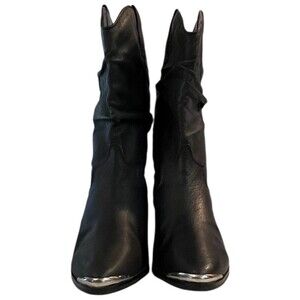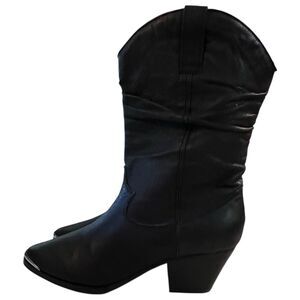 The Dingo Women's Black Western Cowboy Boots Style D1522 in size 8.5M are a stylish and versatile choice for various occasions. These mid-calf boots feature a pointed toe, easy pull-on closure, and a comfortable mid-height block heel. Made from leather with silver toe accents, these boots embody a cowgirl character with a touch of urban flair. Perfect for line dancing or adding a touch of Western-inspired style to any outfit.