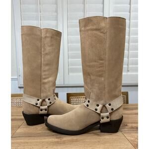Dingo Women's Bronco Suede Leather Boot Harness Natural Cream Sz 11 New w/ Flaws