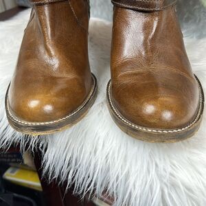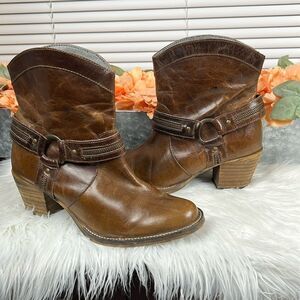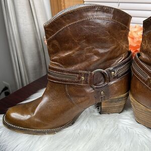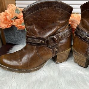 Distressed brown leather western ankle boots! Perfect with jeans, leggings, or a skirt!