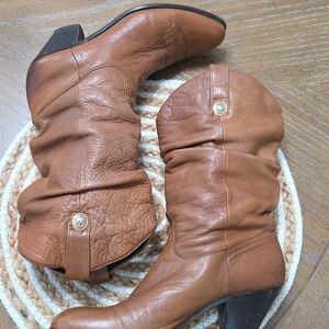 Dingo Tan Brown Leather Ruched Pleated Boho Boots, Size8.5