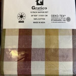 Enhance your dining experience with this set of 12 Gratico Buffalo Checks Cloth Napkins in the Harvest Color Checks design. These napkins feature a beautiful checked pattern that will add a touch of elegance to your table setting. Measuring 10.75x6.06x3.31 Inches, these napkins are the perfect size for everyday use or special occasions.