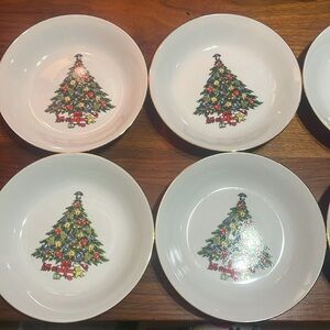 Jamestown China christmas white set of 7 cups and 7 saucers and set of 8 bowls