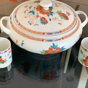 French Limoges Hokusai dinner ware for eight with soup bowls ,cups ,Demi tasse , dinner plates salad plates and ceramic ice bucket.