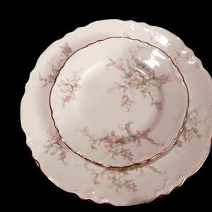 Listed for sale is a Vintage (6) Six Piece Set of Homer Laughlin’s Virginia Rose Dinnerware: 2 EACH – 9" Lunch Plates - 5" Berry Bowls – 6.5" Bread Butter Plates The 6 PC Dinnerware Set and Bowls Set features a floral garland design with rich gold trim. The Six (6) piece Set, Plates and Bowls, produced in 1948 are all in excellent Vintage Condition, free of Chips, Crack and Crazing. A very beautiful 6 PC Dinnerware Set