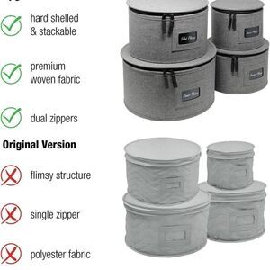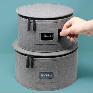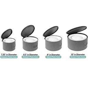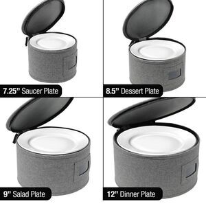 SERVICE FOR 12 — Dish sets for 12 Include: Standard Size 11" Dinner Plate Case (for up to 12 dinner plates), 10" Salad Plate Case (for up to 12 salad plates), 8.5" Dessert Plate Case (for up to 12 dessert plates), 7" Saucer Plate Case (for up to 12 saucers), — Each case includes a content label window to insert your own label to quickly identify contents inside