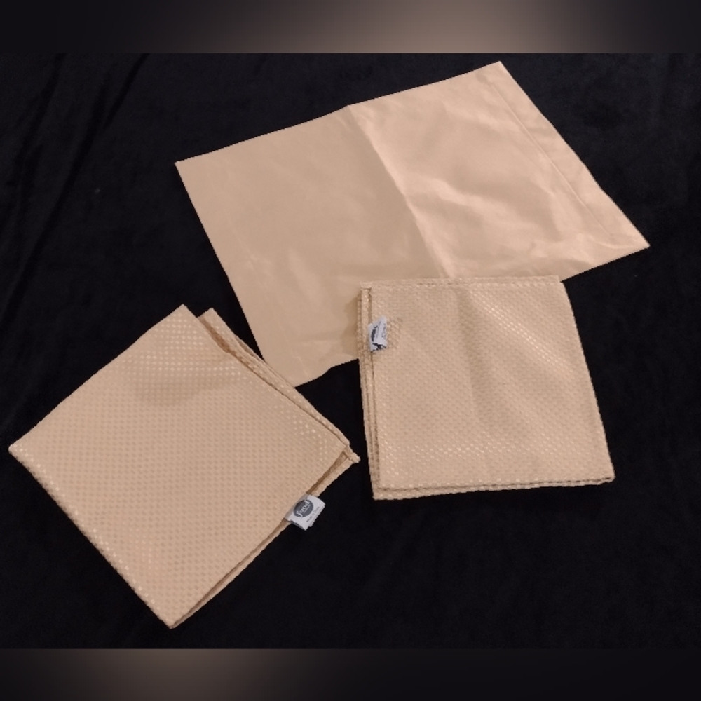 nice condition 3 piece total 2 are made by food network measurements are 20x20in the other didn't have a tag 19 in long the color is gold