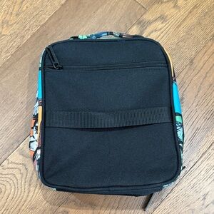 Black lunch bag and pouch set with dinosaur graphics. Perfect for school or outings.