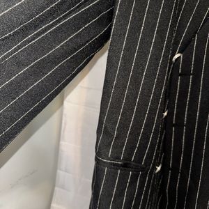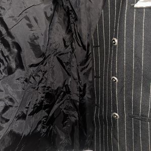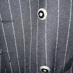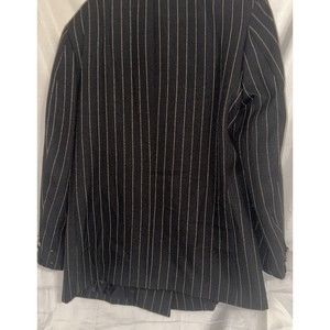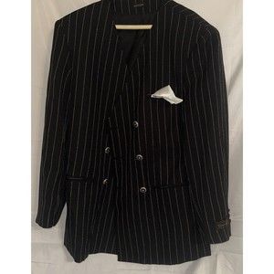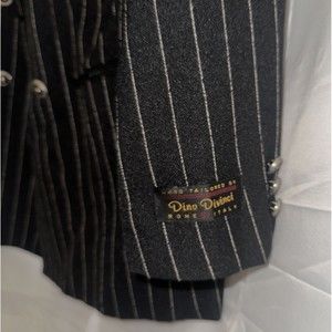 Dino Davinci Mens Double Breasted Coat Jacket Black Sz R40 Pocket White Stripes