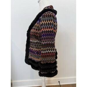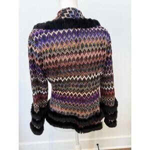 Dino Gaspari Sweater Jacket Womens Small Black Rabbit Fur Diamond Knit