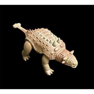 The Dino Riders Ankylosaurus Vintage 1987 TYCO Action Figure is a collectible toy based on the popular TV show "Dino-Riders." This 1:18 scale plastic figure features the iconic Ankylosaurus dinosaur in its original design from 1987. The multicolor action figure is a vintage piece from the Dino-Riders franchise, making it a valuable addition to any toy collection. Packaged without packaging, this item is a must-have for fans of vintage toys and nostalgic TV shows. SMOKE FREE HOME