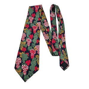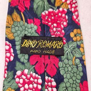 Dino Romaro Men's Neck Tie Polyester Grapes Leaves Hand Made Classic Novelty
