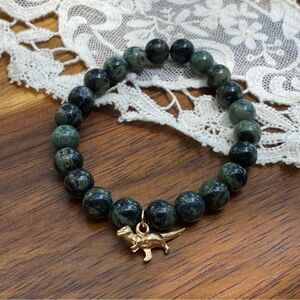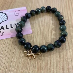 Dino T. rex charm with Kambaba Jasper handmade crystal bracelet 7”
