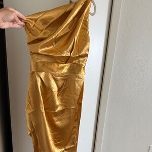 Dino Tabucci One-Shoulder Gold Maxi Dress