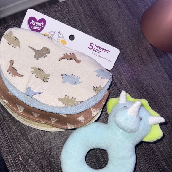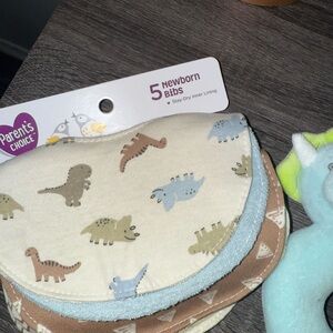 Adorable dinosaur-themed bib set by . Features a variety of colors to brighten up mealtime.#bibs #dino #dinosaur theme #newborn #rattler #baby items #bundle sold together