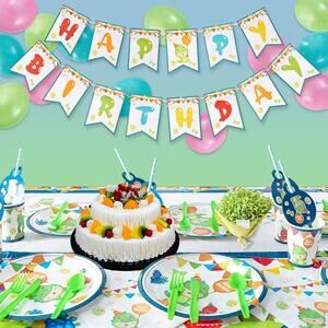 * 🐲【Dinosaur Birthday Party Supplies】- Birthday decorations kit includes:1 happy birthday banner,1tablecloth,21 balloons,1 pack of napkins, 8 paper cups, 8 large paper plates, 8 small paper plates, 8 straws, knives, forks and spoons.
