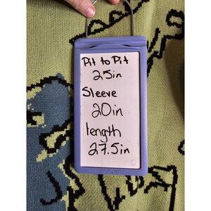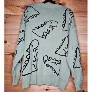 Dinosaur Cartoon Pattern Knit Sweater Green With Blue Size Small No Tag