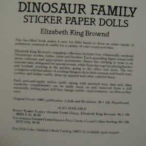 Dinosaur Family Sticker Paper Dolls Dover Paper Dolls by Elizabeth King Brownd NEW.