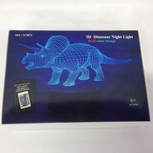 Dinosaur Night Light 3D Illusion Triceratops 7 Changing Colors Lamp w/Black Base