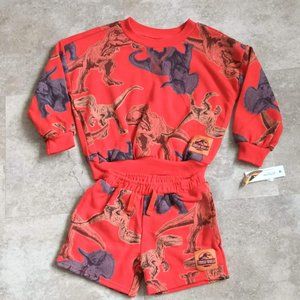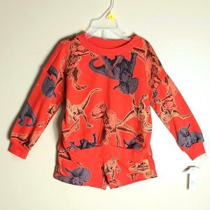 This vibrant red kids matching set features a fun dinosaur print, perfect for playful days. Crafted for comfort and style, it's a must-have for any little one's wardrobe.