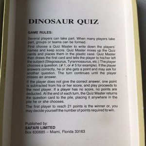 Dinosaur Quiz Prehistoric Animals Educational Card Game Safari LTD Kids Children