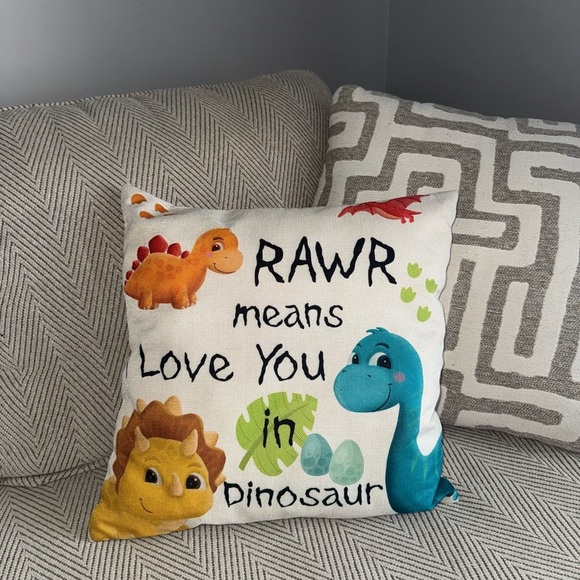 Adorable dinosaur-themed pillow perfect for kids' rooms. Features vibrant colors and a playful design. Adds a fun touch to any space.
