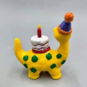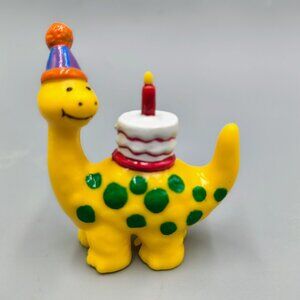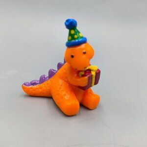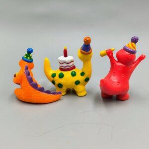 * Dinosaur Cake Toppers * Hard plastic, handpainted, and very colorful - main colors are orange yellow, red, and green * Dinos are wearing party hats and celebrating a child's birthday * Made by Wilton in 1994 * Great condition, look to have never been used - see pictures