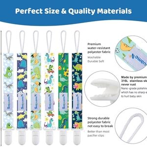Smlpuame Baby Pacifier Clip for Boys Girl,6 Pack Stylish Binky Clips Strap,Paci Holder with Clips Universal Lightweight Fits Most Pacifiers Teeher Toy Teething Ring Soothie,Baby Gifts(Dinosaur-2)