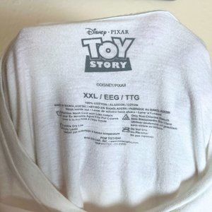 Toy story graphic. soft white t-shirt. features your favorite characters.