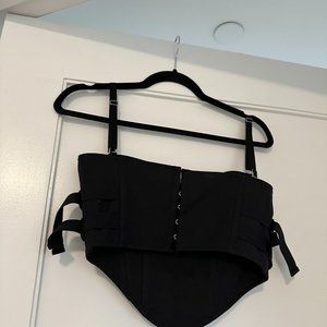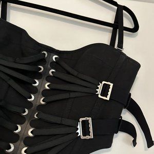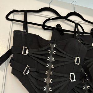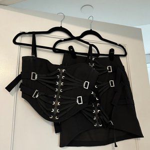 Dion Lee Lace Slider Bustier Corset Cropped Top & Skirt Set Buckle Detail Black