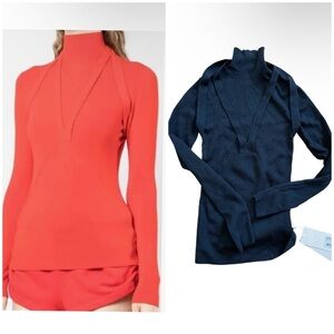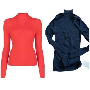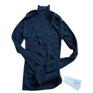 Dion Lee wool blend Harness Skivvy Knitted High-Neck Top in Navy NWT
