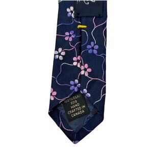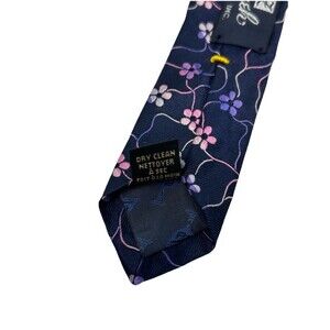 This is a Dion Signature men's tie in a blue floral pattern, crafted from 100% silk with a classic length of 57.5 inches and a width of 4 inches. It is handmade and designed to add a touch of elegance to any formal or casual attire.
