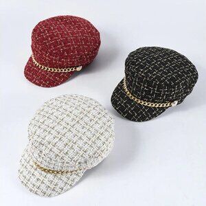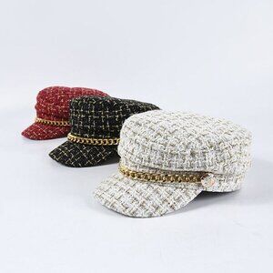 Diona J Women Gatsby Chain Tweed Elegant News Boy Cabbie Fiddler Black C…