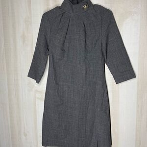 This figure-skimming dress features a high neckline and svelte lines that visually lengthen your form. The breathable linen-blend fabric keeps you comfortable through the day.