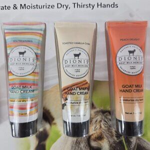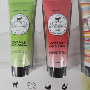 Dionis Goat Milk Hand Cream Set- 5 Pack, 1 Oz Each Vanilla Peach Roseberry More.