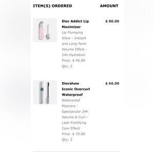 Lip maximizer and iconic over curl mascara. Accidentally purchased 2. Never opened. New used.
